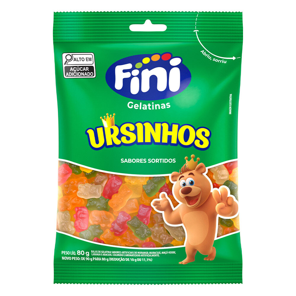 "Ursinhos Fini, um clássico da marca. Doces, coloridos e saborosos, em um formato adorável de urso. Este pacote traz uma variedade de cores e sabores irresistíveis, como laranja, maçã verde, morango, framboesa e maracujá. Pacote com 80g de produto, ideal para dividir com os amigos! Adquira já e mergulhe nesse universo de doçura! * Poderá ocorrer a falta de algum dos sabores, formatos e/ou cores apresentados, sendo o mesmo substituído por outro de igual qualidade."